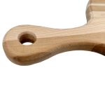 Chop your pizza with style when you use our trendy, handy pizza cutter board that comes with an easy-to-use handle. Made from eco-friendly and renewable Canadian Maple wood, these hardwood pizza cutting boards are finished beautifully with wood grain that looks amazing. The edge has grooves to add style and practicality by collecting crumbs and juice.